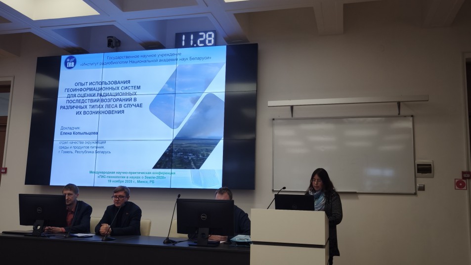 Старший научный сотрудник отдела качества окружающей среды и продуктов питания Копыльцова Е.В. приняла участие в конференции, выступив на пленарном заседании с устным докладом на тему «Опыт использования геоинформационных систем для оценки радиационных последствий возгораний в различных типах леса в случае их возникновения». В своем докладе она рассказала слушателям про использование геоинформационных систем в радиоэкологических исследованиях, в частности, об интеграции ГИС и полевых исследований для оценки и прогнозирования радиационно-экологических последствий в случае возникновения лесных пожаров с учетом расположения элементов противопожарной инфраструктуры на примере Полесского государственного радиационно-экологического заповедника.