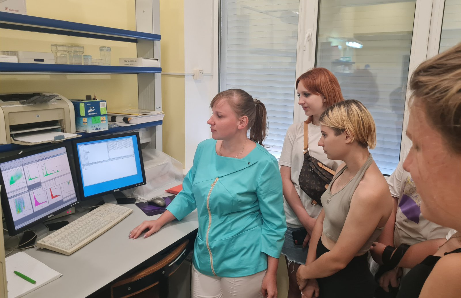 Научные сотрудники отдела рассказали о биохимических методах исследования биологических образцов и об используемом оборудовании, планшетных ридерах для спектрофотометрического анализа широкого ряда биохимических показателей, возможностях использования высокоэффективной жидкостной хроматографии для разделения сложных биологических смесей.