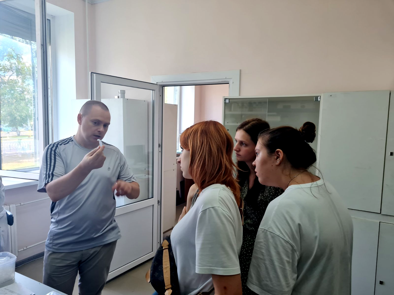 11 августа 2021 года в рамках договора о сотрудничестве между Государственным научным учреждением «Институт радиобиологии НАН Беларуси» и Учреждением образования СШ №66 г.Гомеля с целью проведения профориентационной работы была проведена экскурсия для учеников 10-11 профильных (химия-биология) классов. Заведующая отделом устойчивости биологических систем, кандидат биологических наук Чуешова Наталья Владимировна, заведующая лабораторией экспериментальных биологических моделей, кандидат биологических наук Веялкина Наталья Николаевна и научные сотрудники рассказали об истории института, о направлениях и результатах научных исследований отдела, показали школьникам лаборатории.