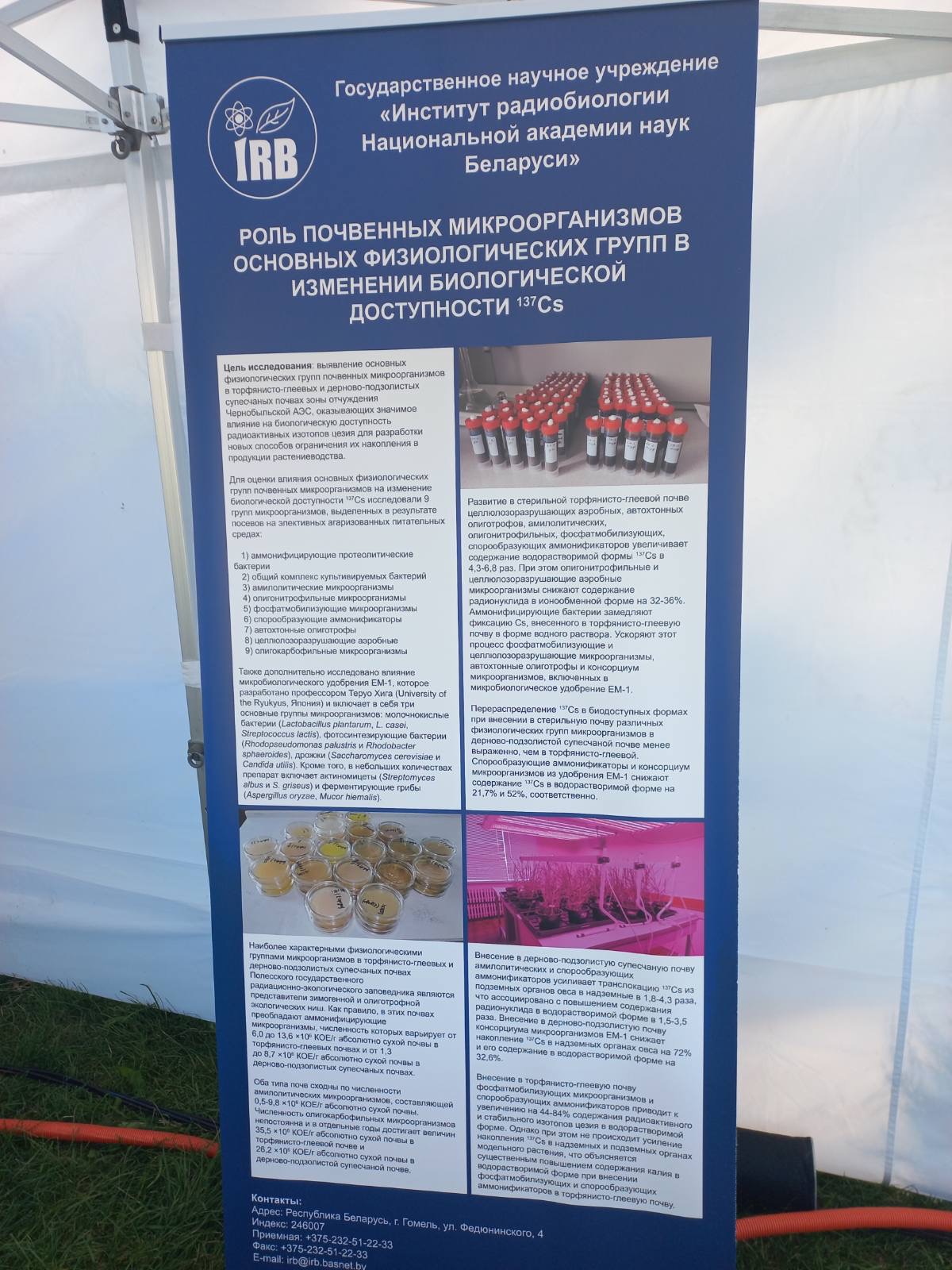 Научный сотрудник лаборатории радиоэкологии Танкевич Е.А. принимает участие в выставке-конкурсе «100 инноваций молодых ученых» с темой проекта «Роль почвенных микроорганизмов основных физиологических групп в изменении биологической доступности 137Сs».