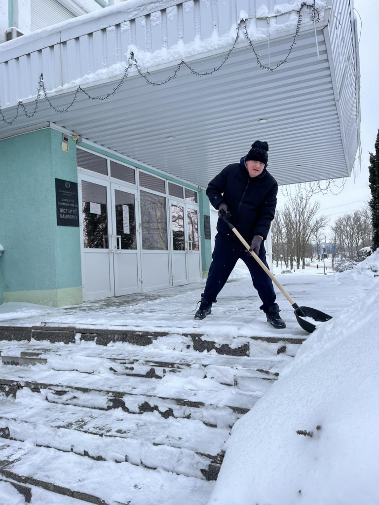 10.01.2026 коллектив Института радиобиологии НАН Беларуси принял активное участие в общегородском мероприятии по уборке снега. Сотрудники вышли на расчистку закреплённой территории, чтобы обеспечить безопасность и чистоту городских улиц.