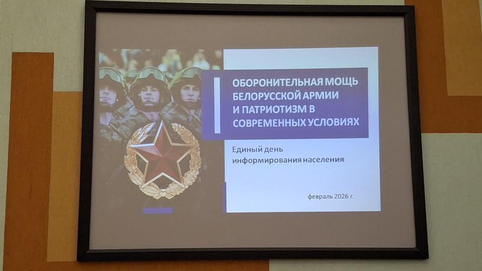 1) Единый день информирования на тему «Оборонительная мощь белорусской армии и патриотизм в современных условиях» (доклад заместителя директора по общим и специальным вопросам Мельника Г.В.);