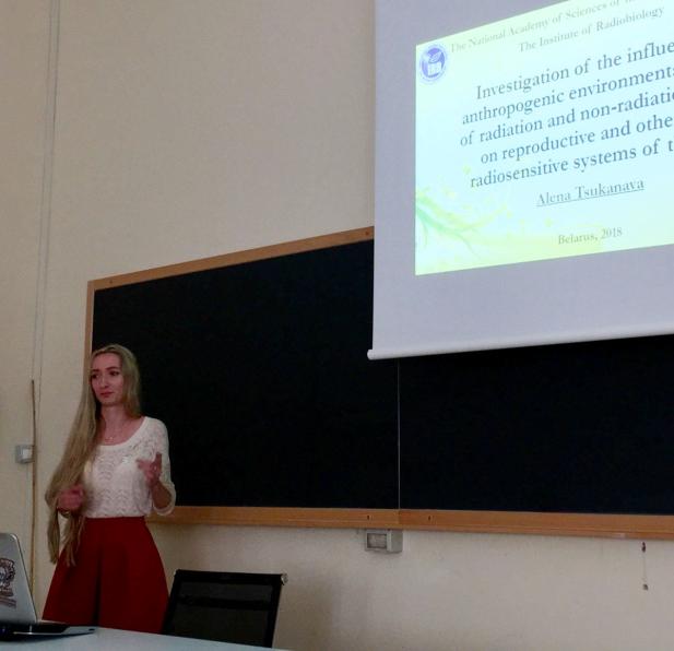 По окончании курсов был проведен экзамен, который Цуканова Елена успешно прошла. А также был сделан доклад-презентация об основных направлениях деятельности Института радиобиологии, о лаборатории экспериментальных биологических моделей и отчет о своих наработках в ИРБ.